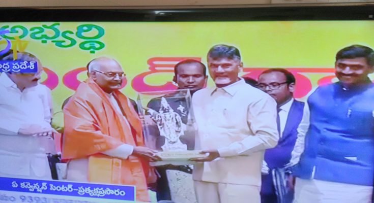 Andhra Pradesh Chief Minister N.Chandrababu Naidu received Mr.Kovind at the Gannavaram airport and later proceeded along with him to the A Convention Centre in Vijayawada at 3 p.m. on July 4th where Mr.Kovind was introduced to the Ministers, MPs and MLAs belonging to the Telugu Desam Party (TDP).