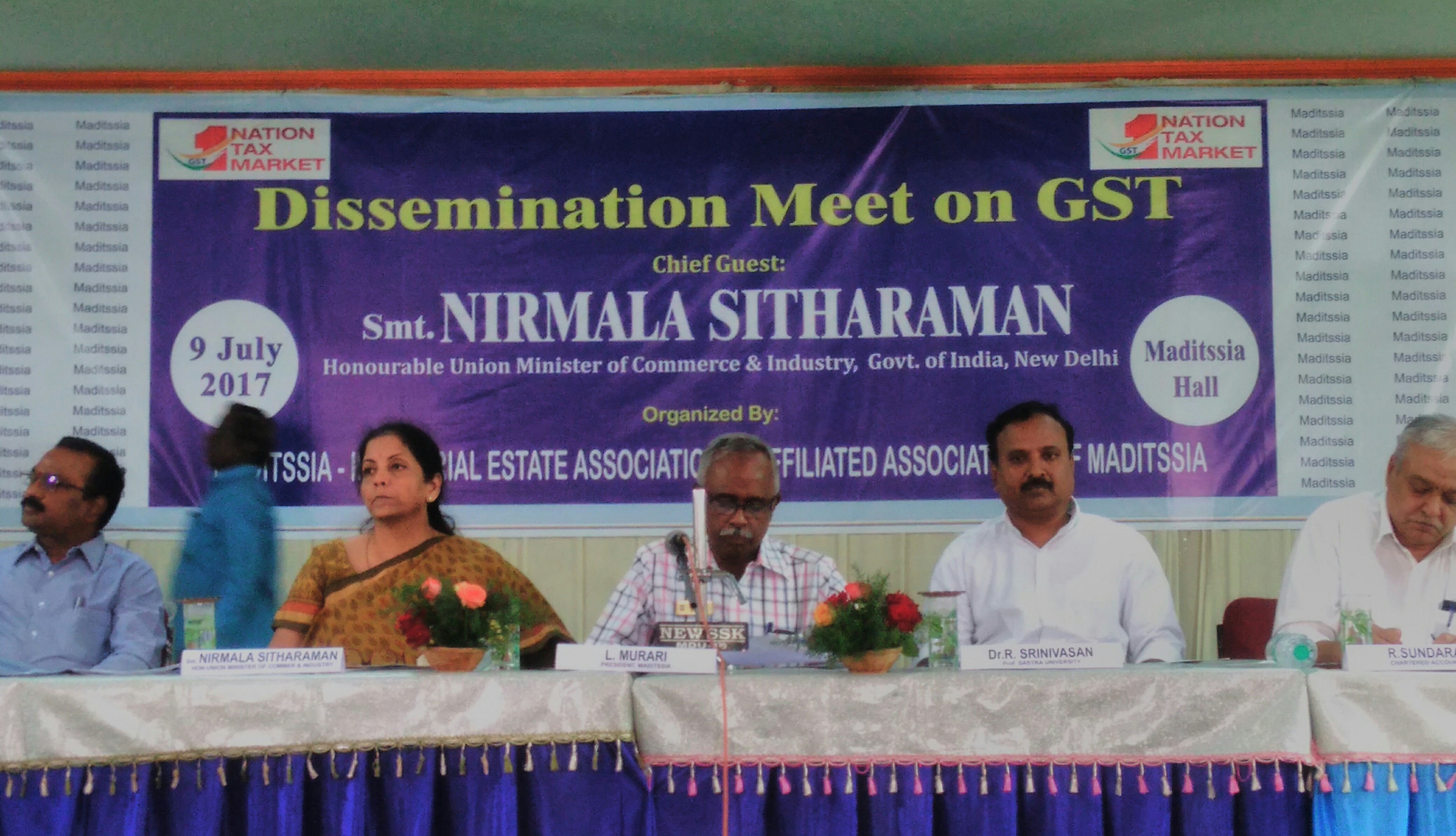 She spent nearly two hours patiently listening to various doubts, fears, questions and representations from a wide range of industry / trade bodies at a special dissemination meet on GST organised by trade body MADITSSIA, its affiliated associations and Industrial Estate Association.