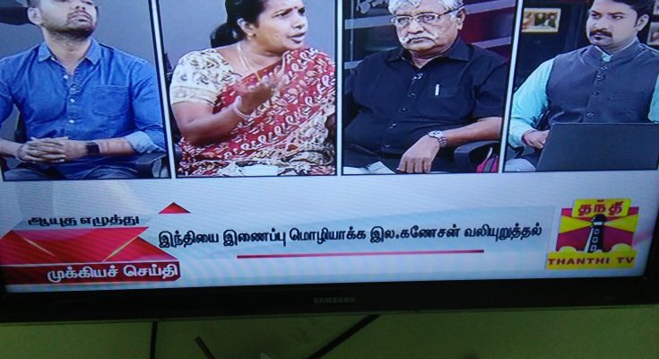 “Understand the substance of his argument. What LG said was that Tamil language did not develop in Tamil Nadu, Hindi could not be learnt by people and only English became dominant and prominent in the State.What is wrong in that speech,” Mrs.Vanathi Srinivasan, BJP State general secretary, had questioned in a discussion on Thanthi TV news channel on July 22nd evening.