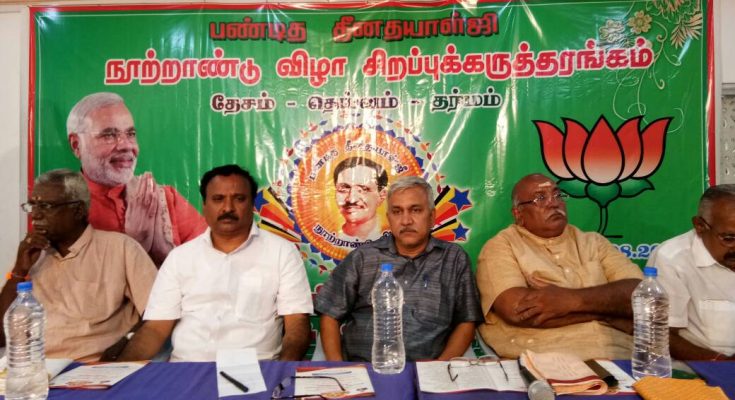 Tamil Nadu BJP State Secretary and Madurai BJP Zone in-charge Prof.Dr.R.Srinivasan along with the party’s senior leader cum spokesperson based in Chennai Mr.Narayanan Thirupathi participated in the meeting and spoke on the ideas with which Pandit Deendayal made a selfless sacrifice for the ‘Bharat Matha’.