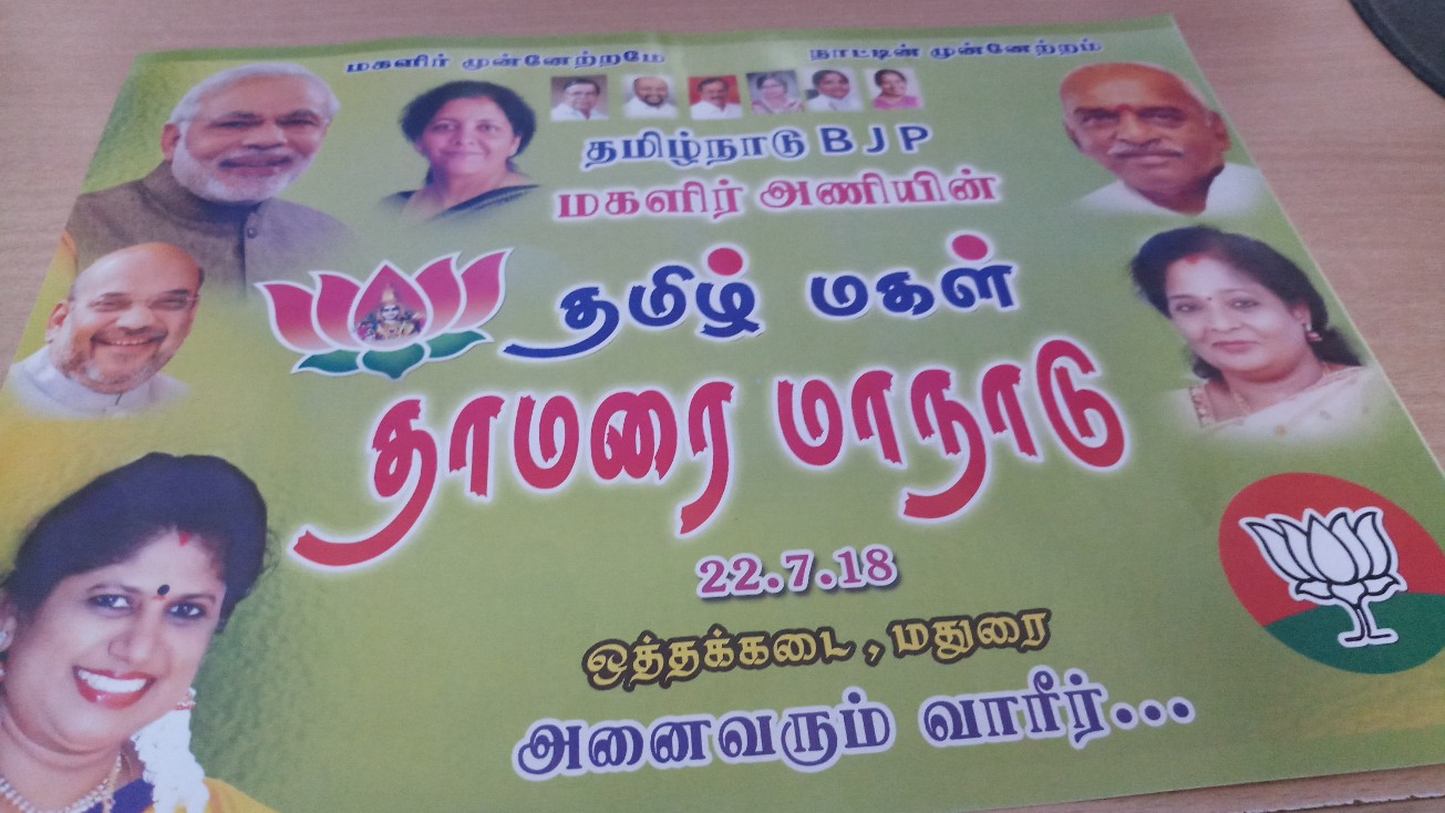 “Please don’t have any other commitments on that day …..July 22nd 2018 Sunday……I am personally inviting all the BJP functionaries – cadres – office-bearers – and especially all women cadres to attend our BJP Magazhir Ani – (women’s wing) conference and voice our support to Modi Ji from Madurai to ensure that BJP wins in upcoming Lok Sabha elections,” Mrs.Mahalakshmi said.