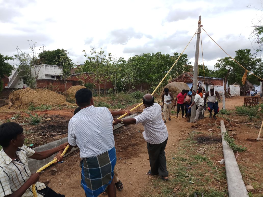 The Electricity Board staff swung into action and in the first round two houses already got electricity supply as current poles came up and the basic works have been completed to cover all the houses soon.