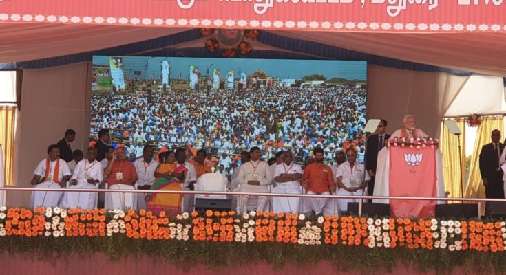 Prime Minister Mr.Narendra Modi, with an entourage of top BJP leaders from national level and Tamil Nadu, had launched the poll bugle for ensuing Parliament elections from a massive public meeting held at Mandela Nagar near Madurai Airport on Sunday afternoon Jan 27th 2019.