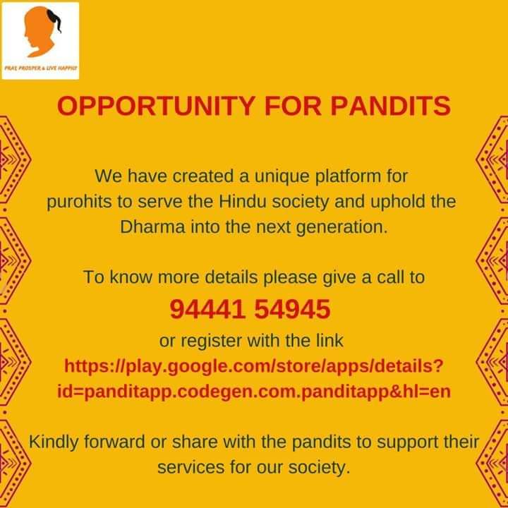 That ‘PANDITS ONLINE’ app facility (playstore app) is now easy just from your call phone. Giving his heart for Hindu culture, Chennai-based Mr.Aravind Tiruvaiyar, who is an expert in corporate strategic / growth consulting, has dedicated himself for launching an initiative specially aimed at preserving, protecting and pursuing the Hindu traditions, Hindu culture, Hindu pujas, Hindu worship, Hindu values and the Hindu dharma in all Hindus’ homes by introducing a concept called ‘Pandits Online’ app in October 2019.