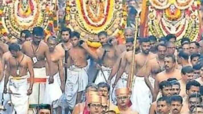 Thiruvananthapuram: The famous ‘Aarat’ procession was taken out in a grand manner at Sree Padmanabha Swamy Temple here with devotees taking part in various rituals on the final day of Alpashi festival celebrations. This ‘Aarattu’ and Alphasi festivities concluded on Monday with traditional ceremonies.