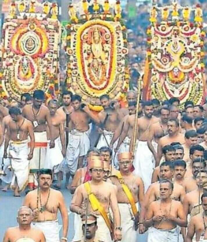 On the final day, 4th November 2019, the ‘Aarattu’ procession was taken out as a part of the celebrations wherein the temple deities including Sree Padmanabha Swamy, Narasimha Murthy and Thiruvambady Krishna were carried in a procession from the temple to seaside (Shanghumughom Beach) and bathed in a holy manner as per rituals and procedures. Flight services were suspended for a few hours and runway closed in Trivandrum airport because of the important procession.