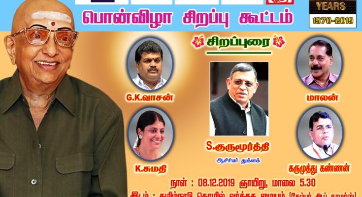 Mr.S.Gurumurthy, Editor, Thuglak, Mr.G.K.Vasan, president, Tamil Maanila Congress (TMC) and prominent personalities including Mr.Karumuttu T.Kannan, Mr.Maalan and Ms.K.Sumathi will participate in the event and talk to the magazine’s readers, admirers, well-wishers and guests.