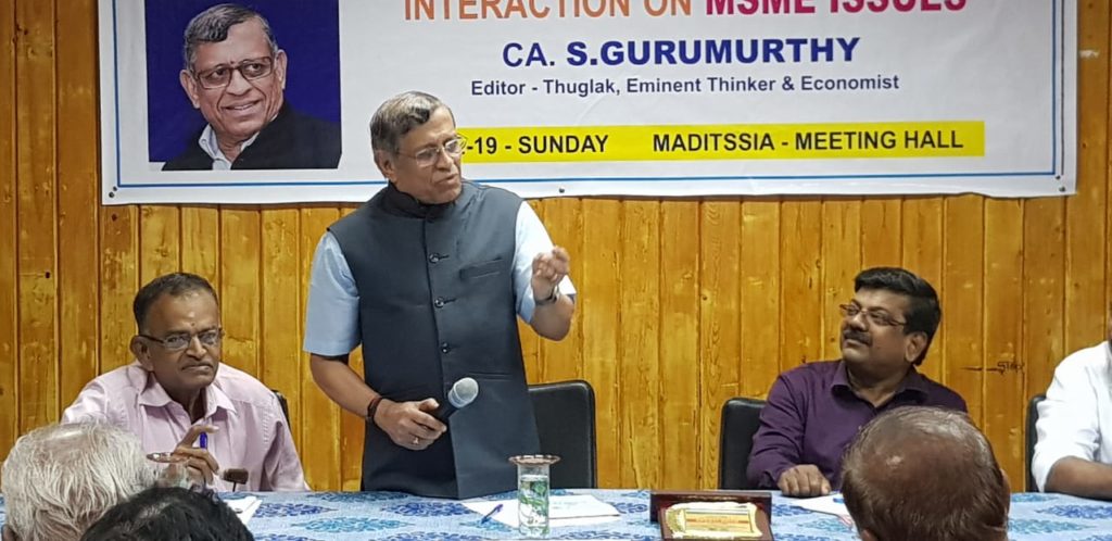 MADURAI: Eminent Thinker, economist and Editor of ‘Thuglak’ magazine Mr.S.Gurumurthy has given some good ideas and put forth his thoughts for protecting the interests of small scale industries in Tamil Nadu.