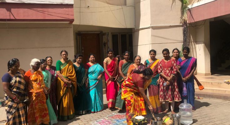 A team of association office-bearers of Sri Vijayalakshmi Apartments led by president Mr.K.Thiagarajan, secretary Mr.M.G.Baskaran, treasurer Mr.P.S.Nagarajan and joint secretary Mr.T.Murugu Ilakkuvan made arrangements for ‘Samathuva Pongal 2020’ celebrations held on 12th January 2020.