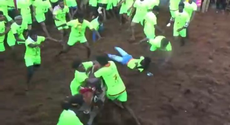 MADURAI: Alanganallur Jallikattu, which is a world famous bull taming event, began today morning at Alanganallur in Madurai district. Totally 700 bulls and 920 bull tamers are participating.
