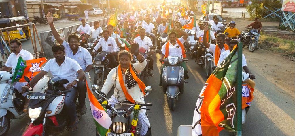 Tomorrow, the BJP bike rally will cover Sivaganga, Dindigul, Pudukottai, Karur and Tiruchi districts.
