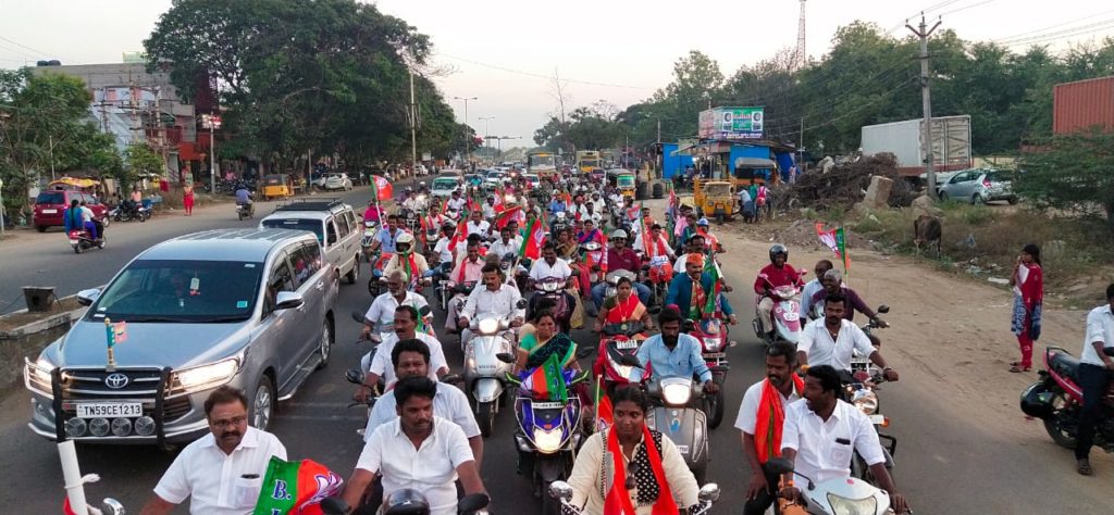 Today, they were received at Tirupparankundram in Madurai from where the bike rally was taken up to Sellur. There, a meeting was organized to explain about the importance of CAA for India and how Prime Minister Mr.Narendra Modi’s government at the Centre is working for strengthening India’s safety, security, progress and development.