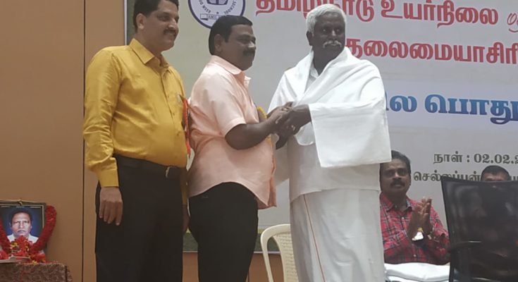 Mr.S.Baskaran, former Madurai district secretary of the association and retired HM of Government High School at Vannivelanpatti in Madurai district, was among those honoured and felicitated by the association for their services to the filed of school education.
