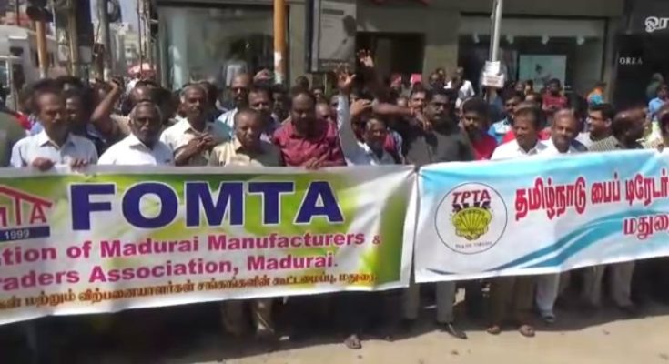 MADURAI: Traders, shopkeepers, businessmen and others belonging to the four Masi Streets around the famous Sri Meenakshi Sundareswarar Temple in Madurai had today – 14th February 2020- staged a roadroko demonstration protest expressing their anger over the delay in completion of Smart City project works by the Madurai Corporation.
