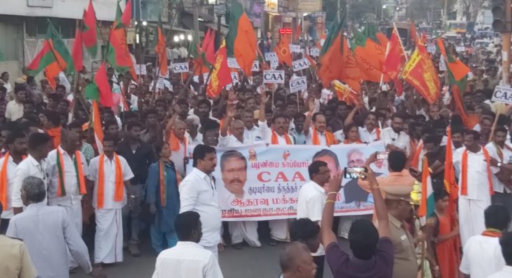 PALANI: The Bharatiya Janata Party (BJP) today held a rally in support of Citizenship Amendment Act (CAA) in temple town Palani in Dindigul district today- 17th February 2020.