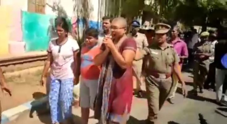 A woman from Tiruppalai in Madurai- Vernika Annaimary- came to the district collectorate in Madurai today being grievance hearing dayi- 17th February 2020. She tried to immolate herself along with two children complaining against her husband Anbuchelian who is using social media posts with messages about herself who is his second wife.