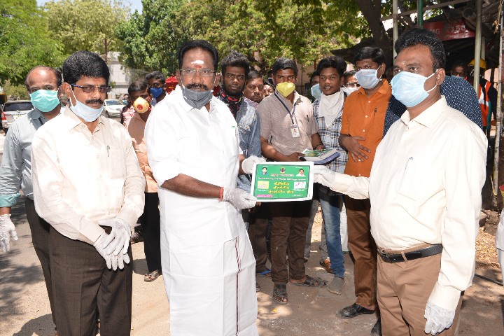 Facemasks and virus protection gear were provided to sanitayr workers involved in Corona control measures. Madurai Corporation Commissioner Mr.S.Visakan, Assistant City Health Officer Vinodh Raja, City Engineer Mr.Arasu and Asisstant Commissioner in-charge Mr.Sekhar were among those who took part in the mass cleaning and sanitising drive at Thathaneri here on 1st April 2020.