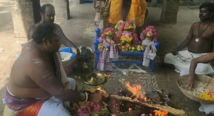 This special ‘homan’ and ‘yagam’ were performed at Sri Kalyana Sundareswarar Temple situated at Avaniapuram here. This temple is very ancient and was constructed during the Pandya period. Some records say that this Balameenakshi Kalyana Sundareswarar Temple belongs to 6th Century A.D.