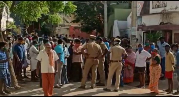 MADURAI: A large number of residents at Corporation-sealed Yagappa Nagar in Madurai came on to the streets today-12th April 2020- protesting the severe restrictions imposed on their movement by police and civic authorities.