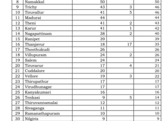 A media bulletin was released with District wise abstract of COVID-19 positive cases by the Health and Family Welfare Department- Directorate of Public Health in Chennai today evening- 17th April 2020.