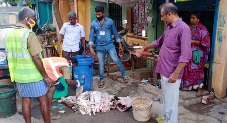 MADURAI: Enforcing Corona lockdown rules in a strict manner, authorities have today- 19th April 2020- have sealed 15 meat shops in Madurai and seized 385 kilos of mutton and 255 kilos of chicken from these violating shops.
