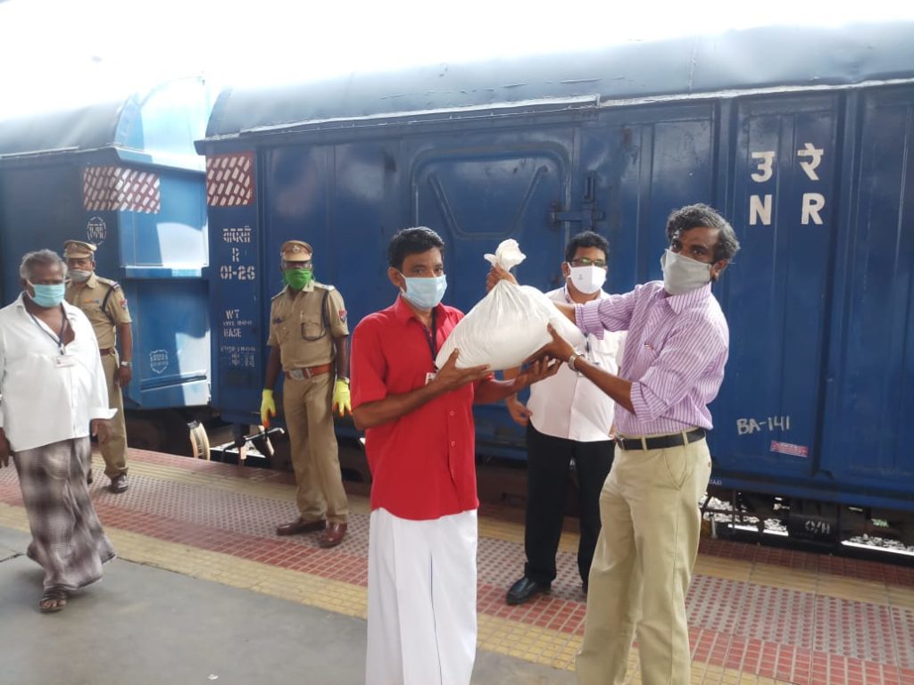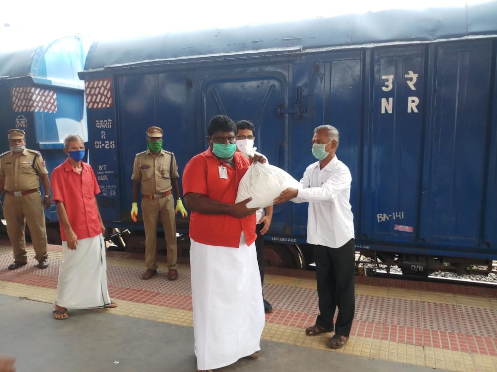 The grocery kits for railway porters and vendors were distributed in the presence of Mr.T.M.Gopi, district thasildhar, Madurai.
