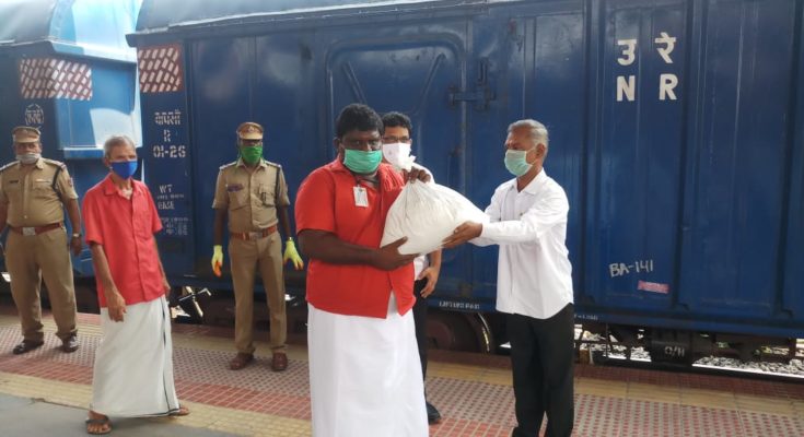 MADURAI: The staff working in the Commercial Department of Southern Railway Madurai Division had provided groceries to porters and platform vendors at Madurai railway station today- 25th April 2020. Grocery kits were also distributed at Rameswaram, Paramakudi, Manamadurai, Vanchi Maniyachi, Kovilpatti, Tirunelveli, Dindigul and Tuticorin railway stations.