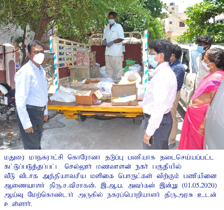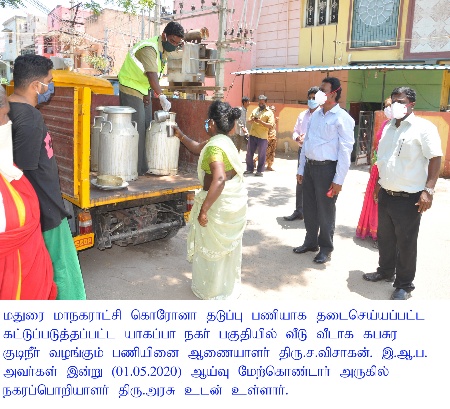 On 1st May 2020, Madurai Corporation Commissioner Mr.S.Visakan inspected the containment areas where tough restrictions are in place in the wake of Corona positive cases confirmed there. The eight areas are Vandiyur Sourashtrapuram, Yagappa Nagar, Sellur Manavalan Nagar, Aanaiyur SVP Nagar, Koodal Nagar, Karisalkulam, Vilangudi and Sellur Bose Street, according to a press release here today.