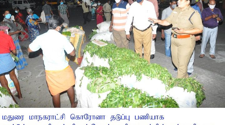 A press release from Madurai Corporation has said that the Commissioner had carried out inspection at the temporary wholesale vegetable market in Maattuthavani last night how the Corona lockdown guidelines and instructions are being followed.