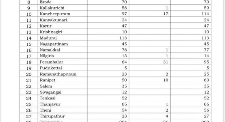 The total number of COVID-19 Positive cases till date is 6,535.Today alone- 526 cases.Chennai – 279 positive cases today. Villupuram – 67 cases today.