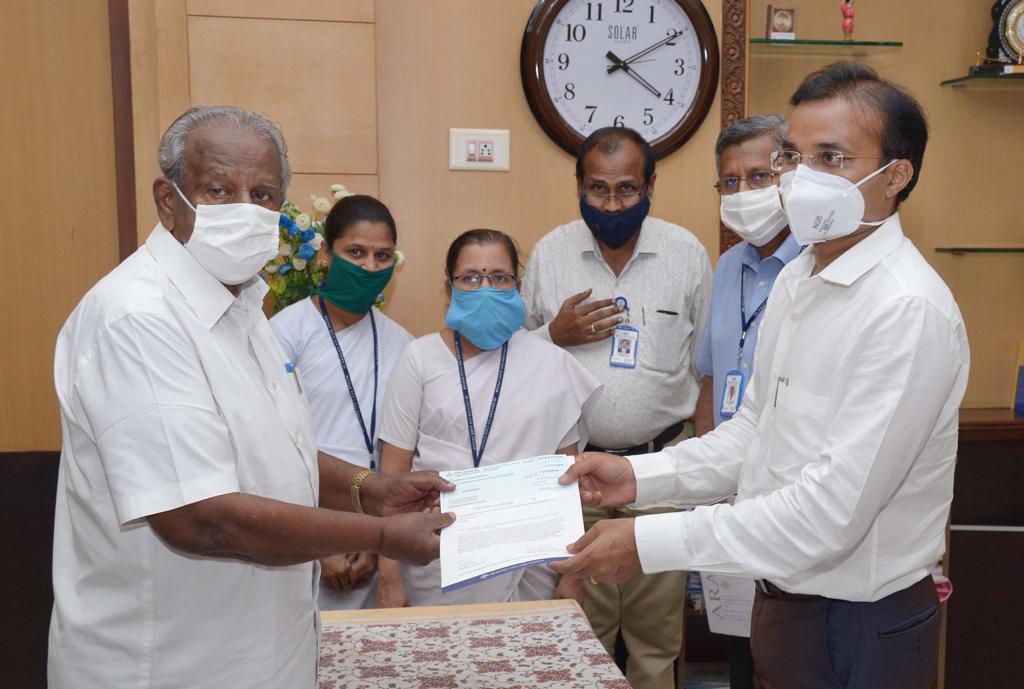 MADURAI: The Aravind Eye Hospitals in Madurai has today contributed Rs.27 lakhs to the Tamil Nadu Chief Minister’s Public Relief Fund towards COVID-19 prevention and relief measures. This amount is a contribution of one day salary of hospital management and staff to the CM Relief Fund.
