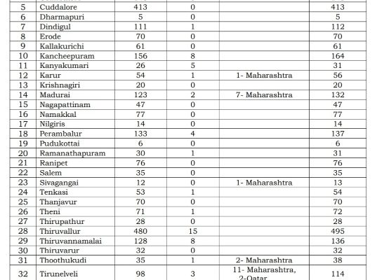 The Health and Family Welfare Department of Government of Tamil Nadu had releasee district wise abstract of COVID-19 positive cases in the State today evening at 6 pm.