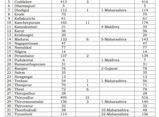 MADURAI: The total number of Corona Positive cases in Tamil Nadu as on today is 10,108 cases – 15th May 2020.