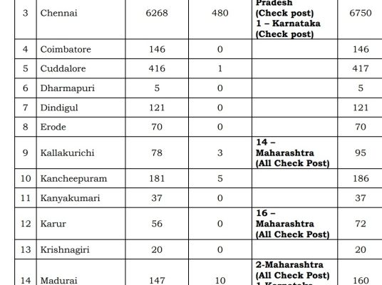 In a single day today, the State had 558 positive cases and another 81 cases of those from other States / international returnees. Both putting together, the total number in Tamil Nadu today alone is 639 cases, according to the media bulletin released by the Health and Family Welfare Department of Government of Tamil Nadu, which was released at 6 pm on 17th May 2020.