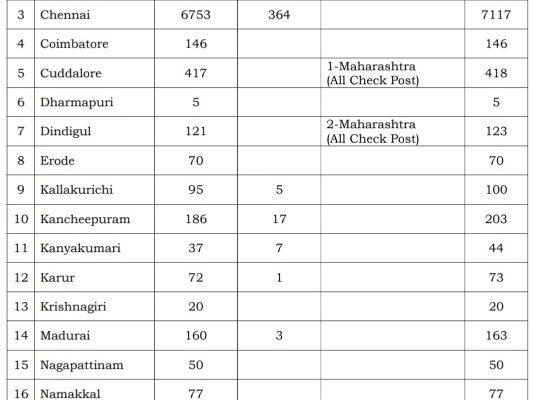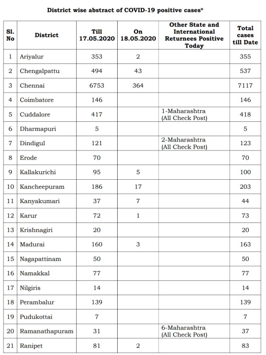 MADURAI: The total number of Corona Positive cases reported in Tamil Nadu today is 536 cases. With this the total cases in the State till date (18th May 2020) is 11,760.