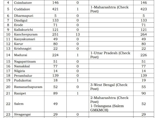 MADURAI: The Corona positive confirmed cases in Tamil Nadu continued to be spiking today also – on 23rd May 2020- with the total number of positive cases crossing 15,500 today.