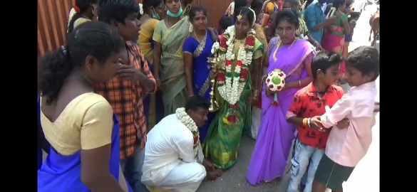 The temple was closed but the wedlock happened in the lockdown today- in the presence of only a few family members- and the auspicious time saw marriages taking place in public- on the street- before the temple in Madurai today.