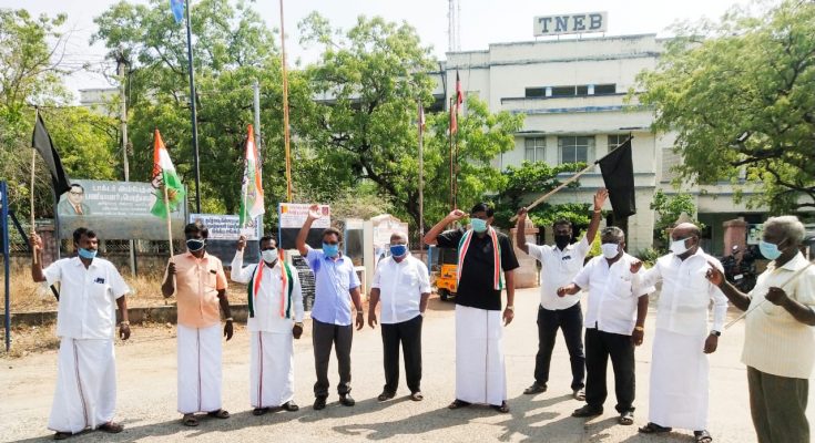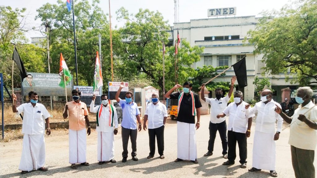 MADURAI: Condemning the Centre’s decision to discontinue free electricity for farmers, the Congress party functionaries have staged a protest in Madurai today- 26th May 2020. They also lashed out at the Tamil Nadu government for siding with the central government in this important issue of farmers’ interests.