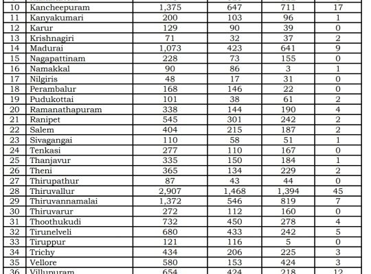 MADURAI: The Health and Family Welfare Department of Government of Tamil Nadu has today released a chart giving Corona positive cases information of each district in the State as on 24th June 2020.