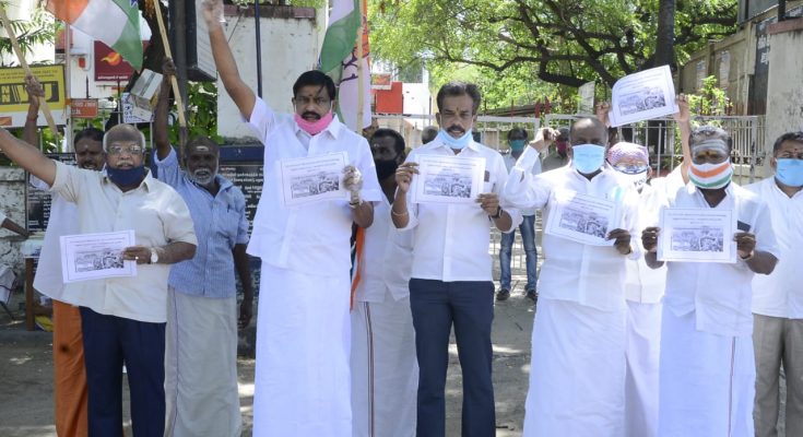 MADURAI: The Congress Party held a protest in Madurai on 29th June 2020 condemning the daily hike of petrol and diesel prices.