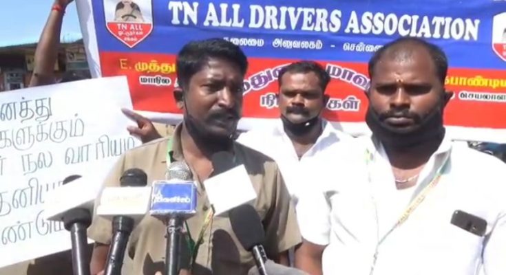 Drivers demand welfare board, stage protest in Madurai (Video)