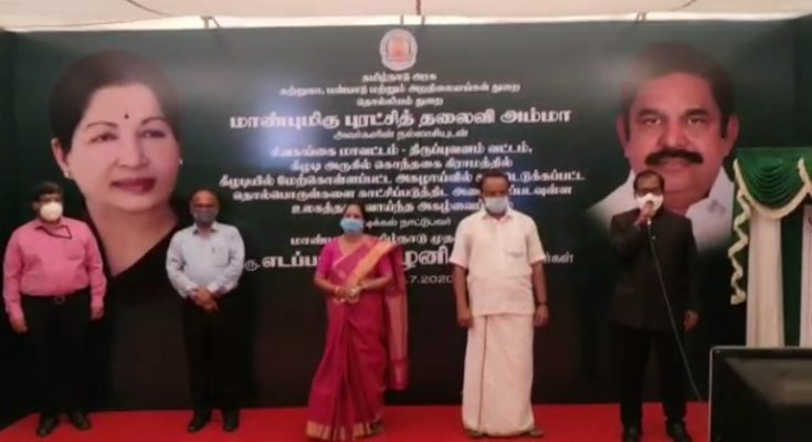 Mr.Edappadi K.Palanisamy laid foundation stone through video-conferencing facility from Secretariat in Chennai today morning. Excavations took place in phases at Keeladi site in Sivaganga district from the year 2014. Excavation works are still going on.