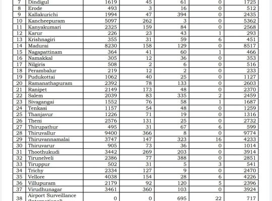 MADURAI: Tamil Nadu has reported 4,965 COVID-19 positive cases today- on 21st July 2020- and the total number of Corona cases till date in the State is 1,80,643, according to media bulletin released today evening by the Health and Family Welfare Department of Government of Tamil Nadu, giving district wise abstract of Corona cases in the State today.