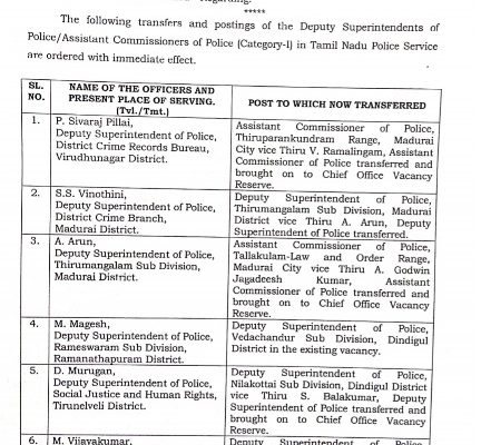 Home NEWS & PULSE DSP transfers and postings- Tamil Nadu police- 29th July