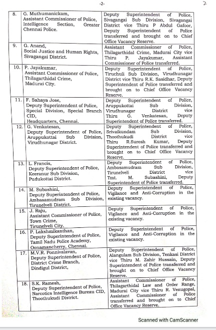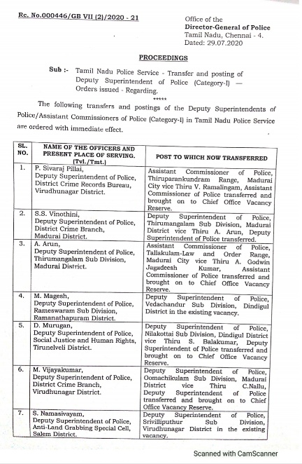 DSP transfers and postings- Tamil Nadu police- 29th July