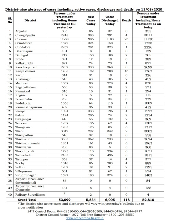 11th AUG CORONA UPDATE OF TAMIL NADU DISTRICTS