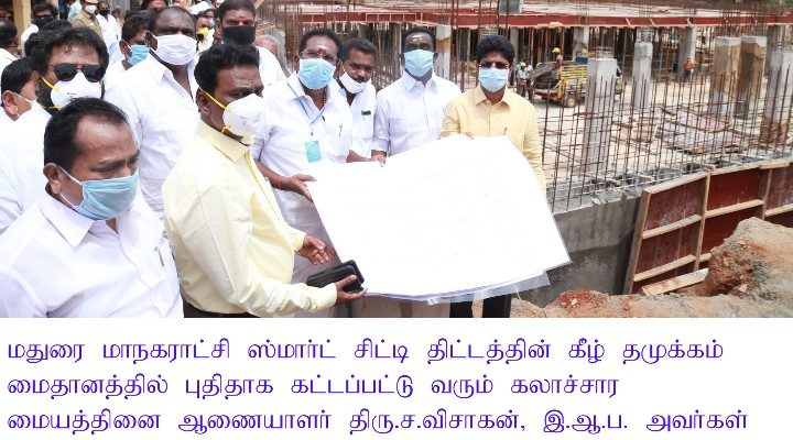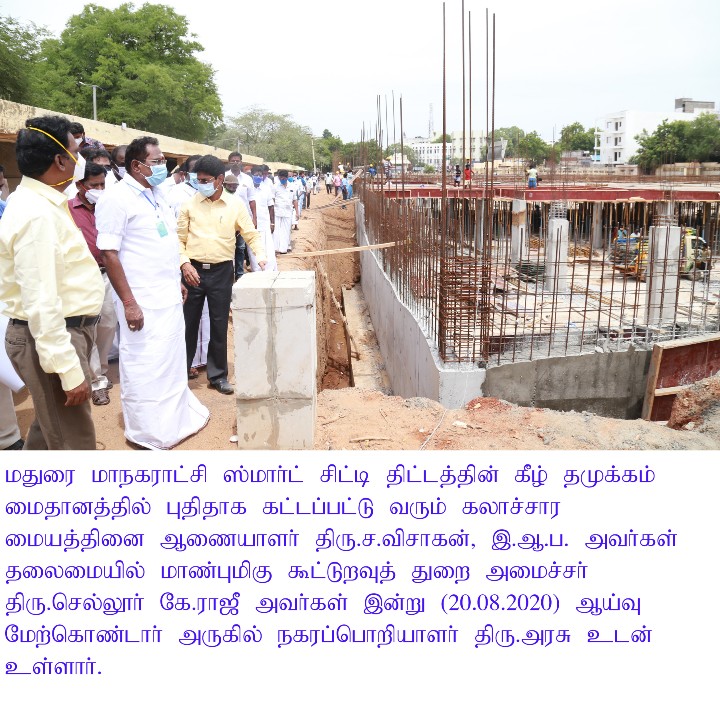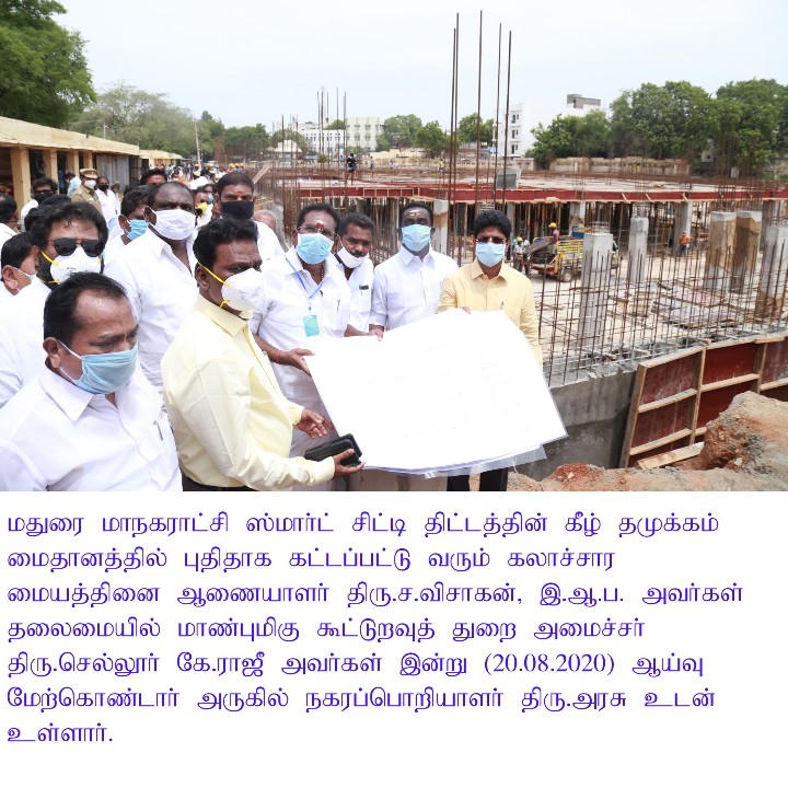 On 20th August 2020, Mr.Sellur Raju had inspected the civil construction works going on at the famous Tamukkam Ground here and asked officials about the works in progress for Madurai Convention Centre that is coming up at this popular spot called Tamukkam Ground.