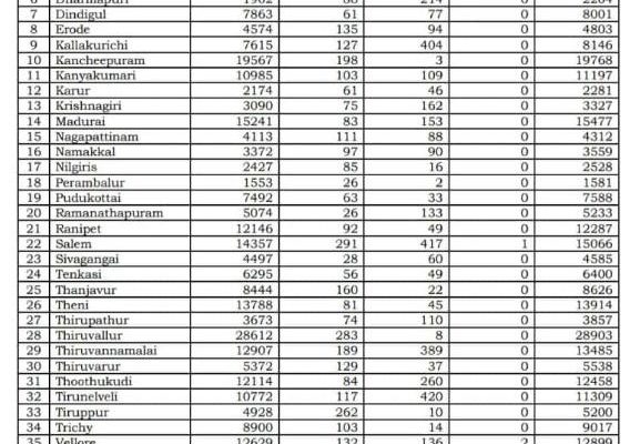 MADURAI: Tamil Nadu had reported 5,687 new COVID cases on 15th September 2020. The total number of Corona positive cases till date in the State is 5,14,208, according to media bulletin released by the Health and Family Welfare Department of Government of Tamil Nadu today evening- 15th September 2020.