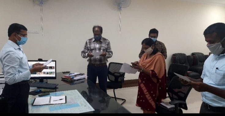 MADURAI: In order to create awareness among the Railway staff and officers about COVID 19 precautions, staff and officers took a pledge on Thursday (08.10.2020). V.R.Lenin, DRM administered the pledge to Railway officers and in turn the Railway officers administered the same to their staff at their work spot with social distancing.