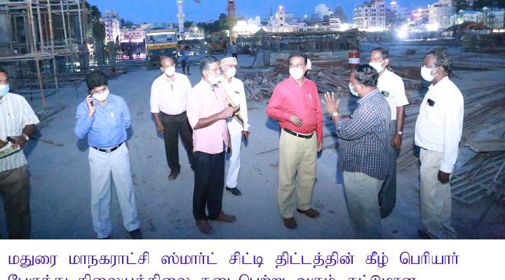 MADURAI: As Madurai Smart City project works are being undertaken at a fast pace, Madurai Corporation Commissioner Mr.S.Visakan along with senior officials had visited a few places here today- on 23rd October 2020. His inspection today assumes significance because of the upcoming festival season and the expected public rush / crowding in these areas during the shopping time.